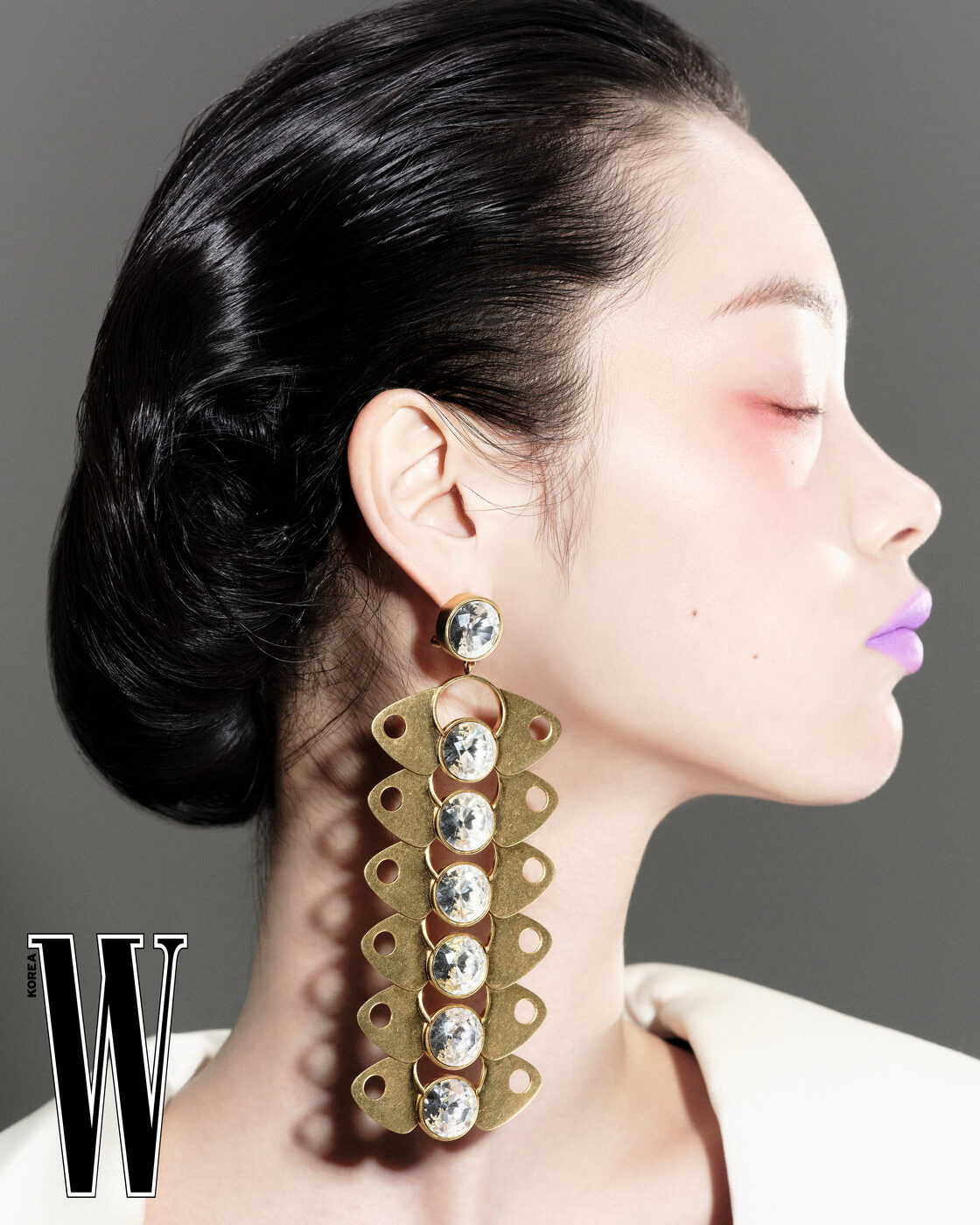 파쥬 이어링은 Valentino Garavani, 드레스는 Valentino 제품.
