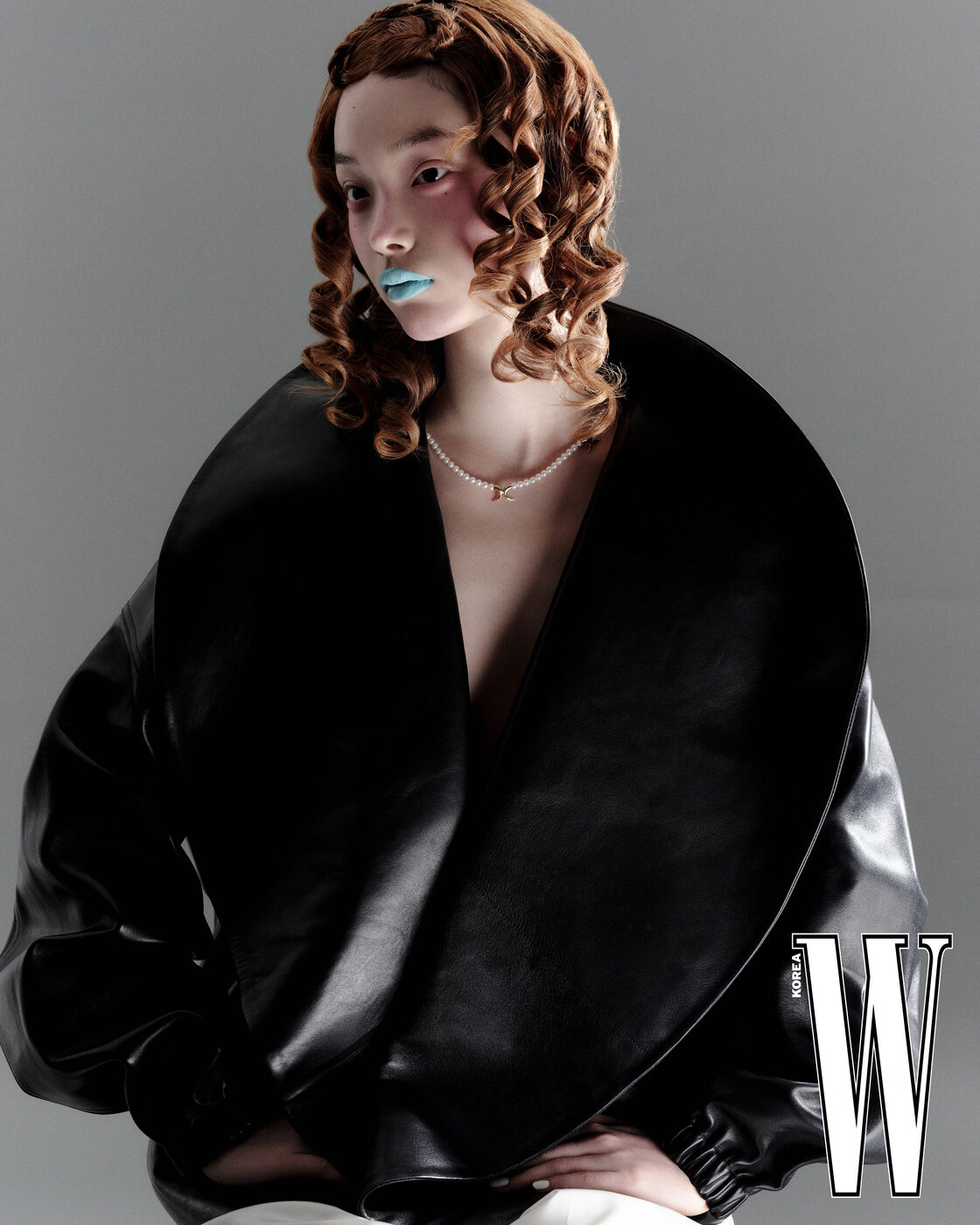 데인저 호른 네크리스는 Tasaki, 가죽 재킷과 팬츠는 Phoebe Philo 제품.