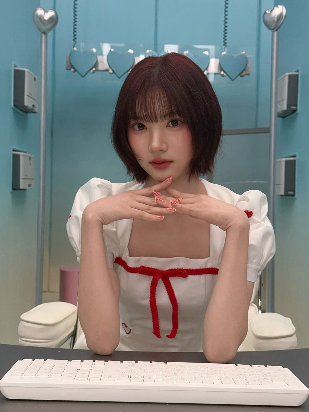 데뷔부터 꾸준히 단발을 유지하며 새로운 단발 여신으로 떠오르고 있는 하츠투하츠 지우. 일자 단발부터 레이어드 스타일링까지, 단발로 연출할 수 있는 다양한 모습들을 보여주고 있죠. 최근에는 질감이 살아있는 허쉬 레이어드 컷을 선보이며 또 한 번 분위기를 전환했습니다. 페이스 라인에 맞춰 선명하게 끝선을 살린 것이 특징인데요. 여기에 세미 풀뱅을 더해 한층 귀엽고 트렌디한 인상을 완성했네요.