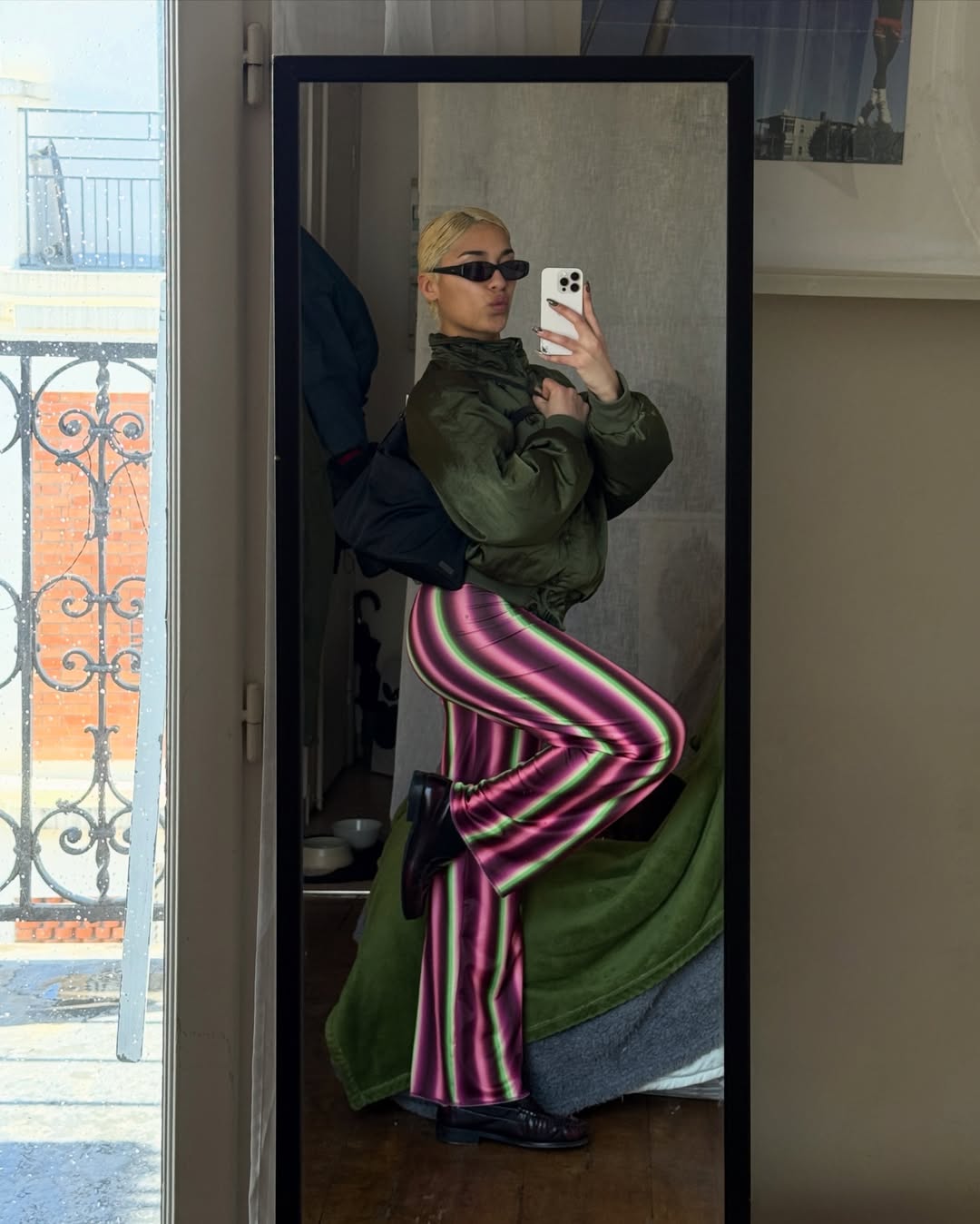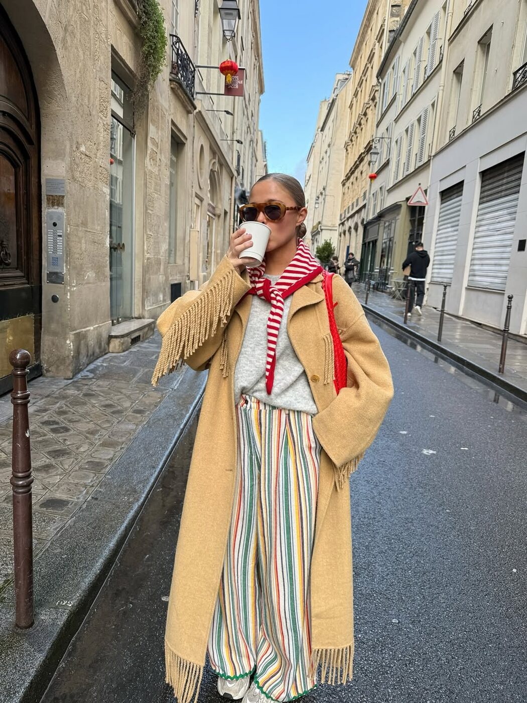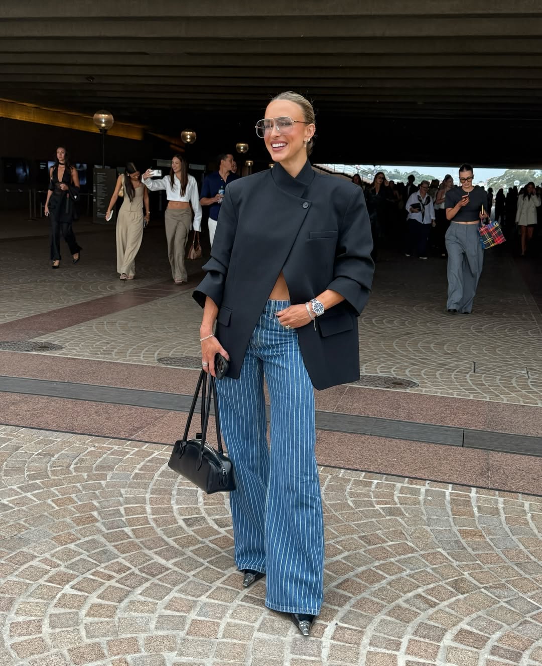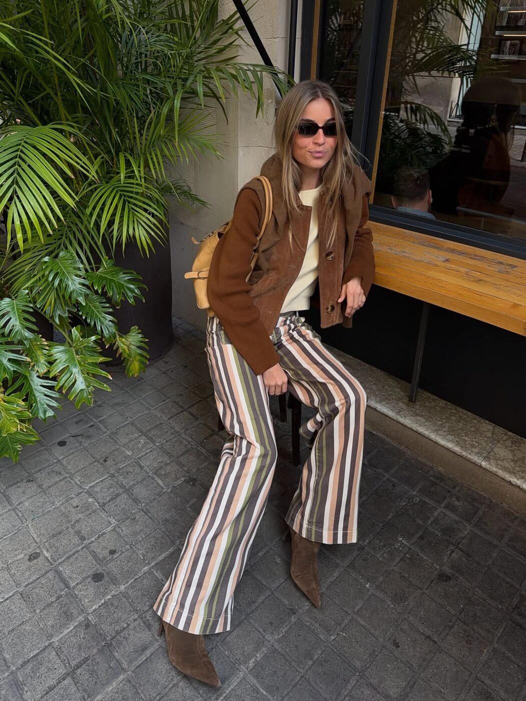 팬츠를 고를 때는 스트라이프 간격과 핏을 함께 고려하는 게 좋아요. 넓은 간격의 스트라이프는 대담하고 강한 인상을 주기 때문에, 세미 와이드 핏처럼 여유 있게 떨어지는 실루엣과 잘 어울려요. 시각적으로 볼륨감이 더해지면서 편안하면서도 스타일리시한 느낌을 만들어주거든요.