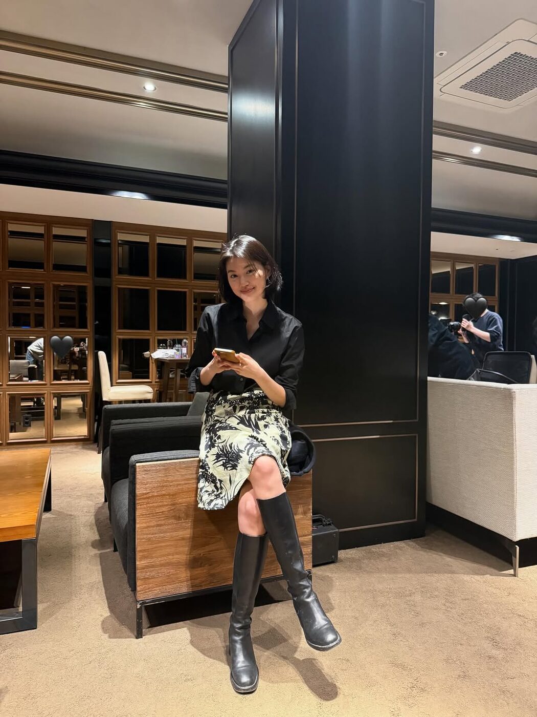 미디 스커트와 롱 부츠의 조합은 파티 룩은 물론, 출근 룩에도 잘 어울립니다. 롱 부츠는 자칫 다리가 짧아 보일 수 있는 이 스커트를 스타일링하는 현명한 방법이죠. 리사와 김도연은 무릎 아래까지 오는 레더 소재의 롱 부츠로 안정적인 아웃핏을 선보였습니다. 공효진의 룩은 보다 클래식한데요. 레더 스커트에 매치한 싸이 하이 부츠는 스웨이드 소재로 부드러운 질감을 더해 전체적으로 차분하고 고급스러운 분위기를 완성했습니다.