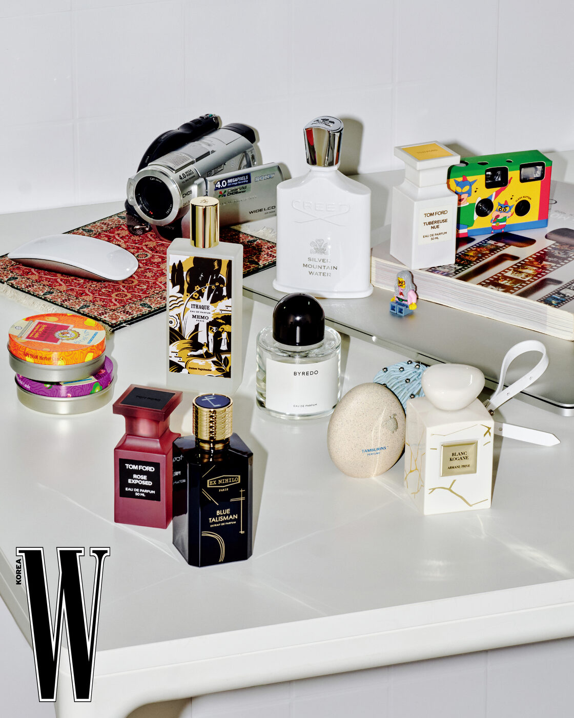 향을 고르는 나만의 철학은? 조향사의 의도나 미학이 느껴지는 향에 끌린다. 자연스럽게 니치 향수를 좋아하게 된 이유다. 특히 샌들우드, 머스크를 베이스로 활용한 향을 선호한다, 시간이 지나며 피부에 남는 긴 여운이 좋다.