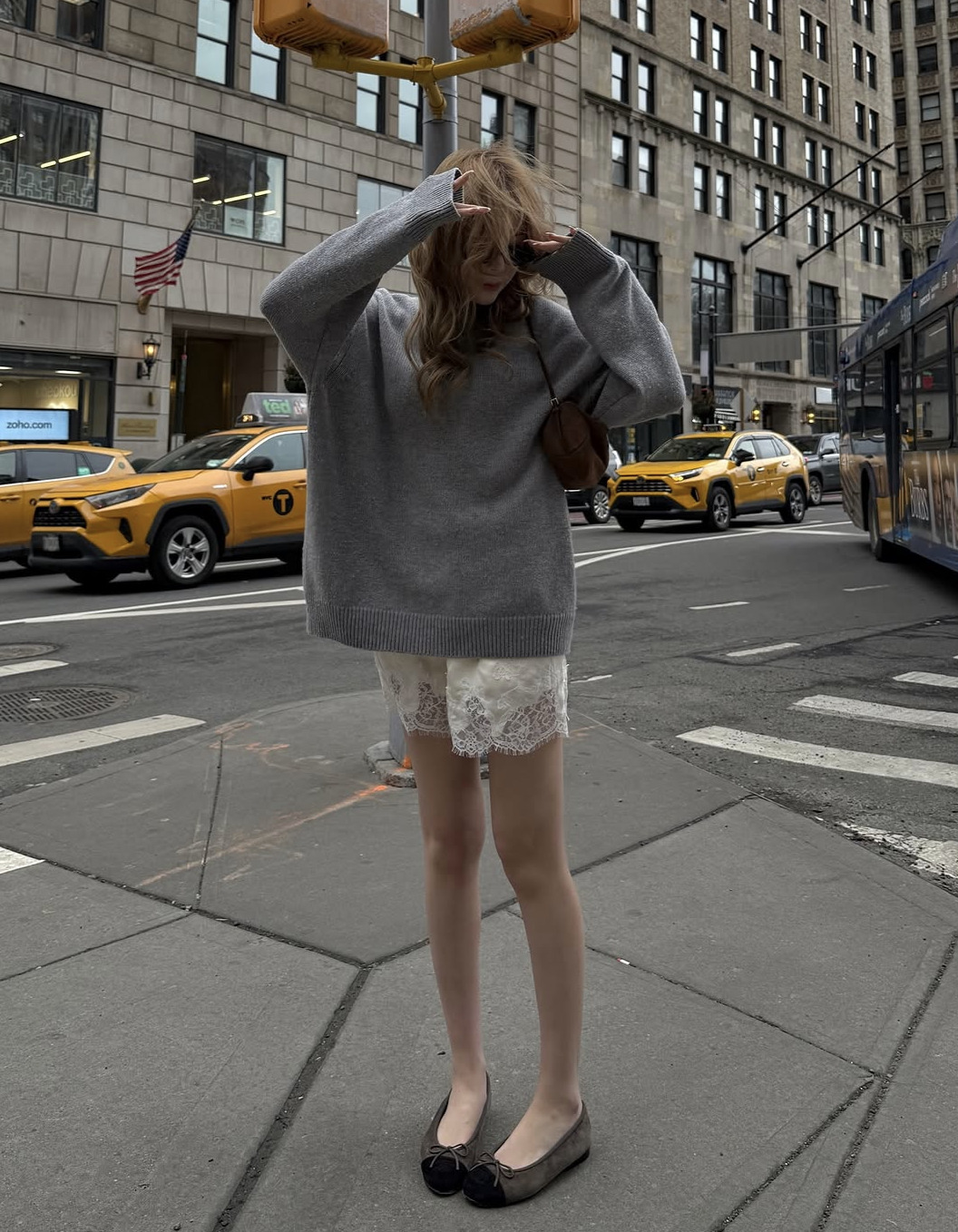 이 그레이 니트의 가장 트렌디한 쓰임은 바로 레이스와 프릴 등 여성스러운 디테일의 란제리 무드 아이템과 매칭했을 때입니다. 새틴 소재의 레이스 쇼츠와 박시한 그레이 니트는 물론이고 머메이드 라인의 프릴 장식 미디 스커트와 그레이 니트 카디건의 조합도 시선을 사로잡죠. 로맨틱한 하의와 무심한 그레이 니트의 조합. 바로 올봄 가장 스타일리시한 옷차림 중 하나입니다.