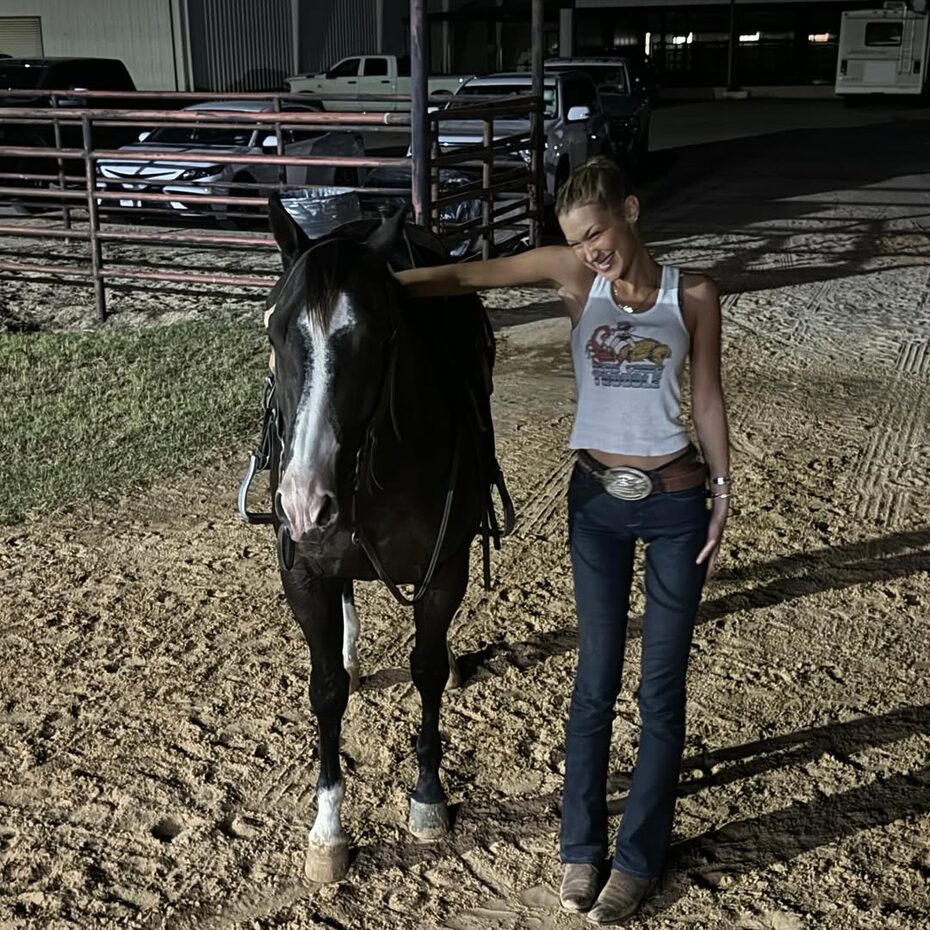 여전히 승마에 푹 빠져 있는 벨라 하디드. 단순한 취미를 넘어 이제 그녀의 스타일을 책임지는 키워드가 되었습니다. 특히 카우 걸 무드를 완성하는 핵심은 단연 존재감 있는 빅 벨트인데요. 버클 플레이트에 웨스턴 무드의 모티프가 새겨진 볼드한 벨트를 즐겨 착용하는 편이죠. 이처럼 볼드한 벨트를 선택했다면 나머지 실루엣은 슬림 하게 정리하는 것이 그녀의 스타일링 포인트입니다. 빈티지한 그래픽이 더해진 타이트한 티셔츠에 스키니 한 라인의 진을 매치해 대비를 주면 벨트의 존재감이 더욱 살아나죠. 특유의 러프한 무드의 실루엣이 맞물리면서 섹시하면서도 쿨한 카우 걸 스타일이 자연스럽게 완성됩니다.