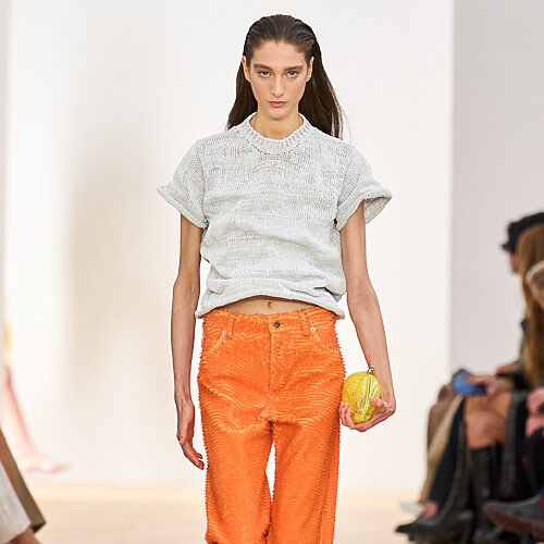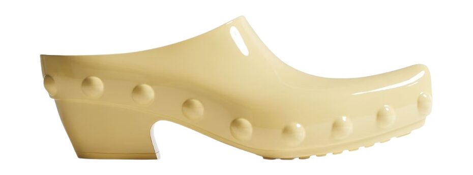 보테가 베네타는 러버 소재의 클로그를 런웨이에 올렸습니다. 미래적인 프린지 재킷과 가죽 셋업에 매치해 끌로에와 마찬가지로 한껏 힘을 준 룩에 젤리 슈즈로 쿨한 터치를 더한 점이 인상 깊습니다. 옷이 주는 존재감과 아우라 덕분에 슈즈가 고무 소재라도 전혀 언밸런스해 보이지 않죠.
