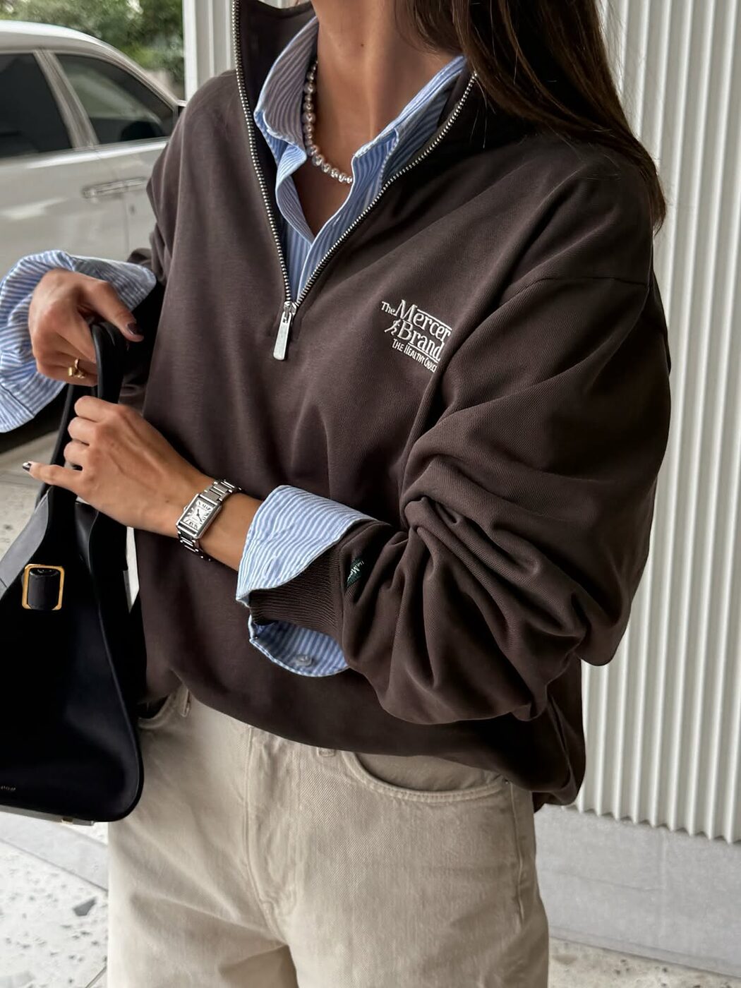 그리고 하프 집업의 찐 장점은 하의를 가리지 않는다는 데 있습니다. 데일리로 입는 청바지는 물론이고, 일자로 쭉 뻗은 슬랙스나 짧은 쇼츠까지도 아우를 수 있거든요. 적당히 단정하면서도 활동적이라 격식 있는 자리부터 일상복, 출근 룩까지 모두 소화할 수 있는 겁니다.