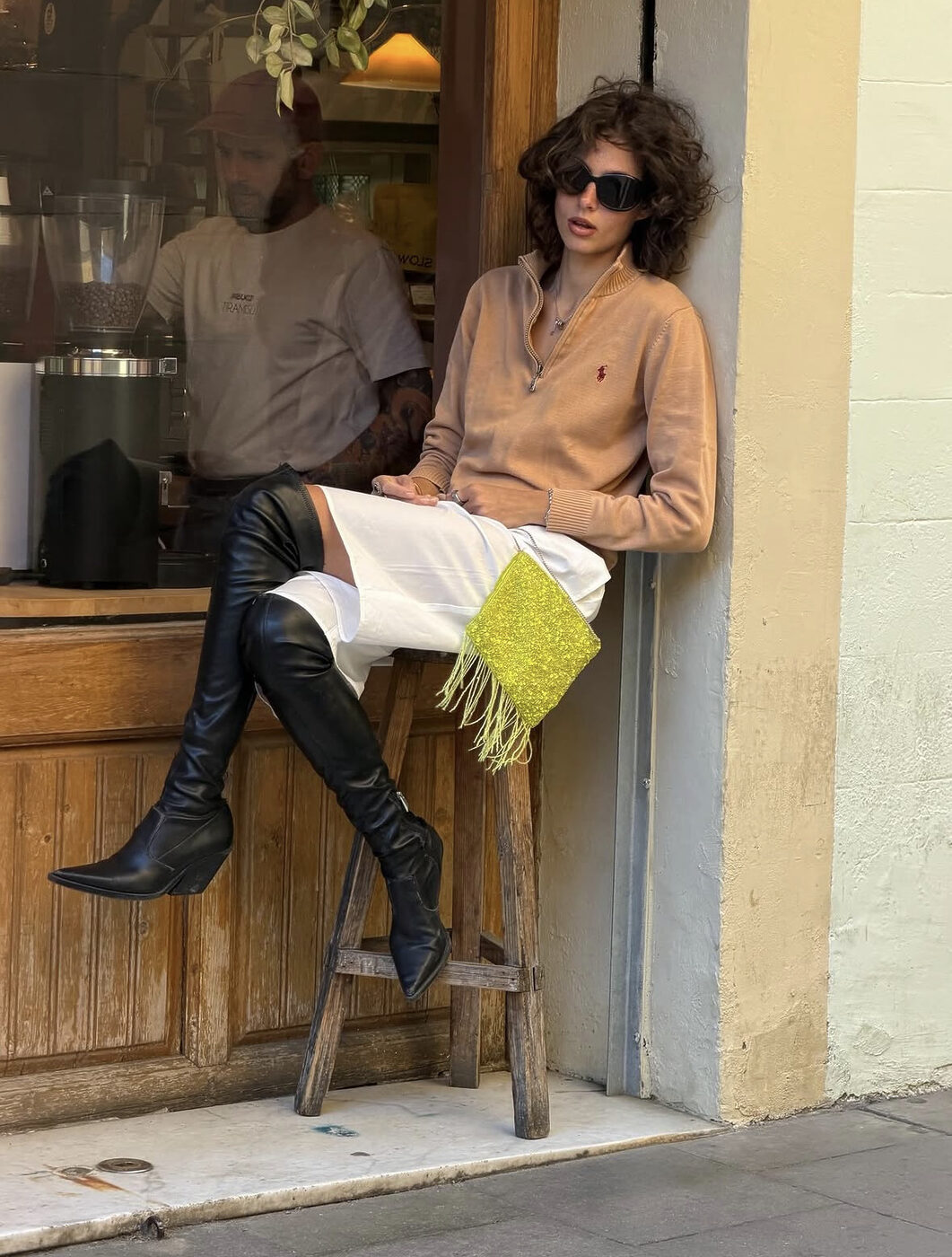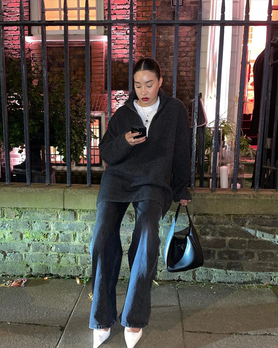 하프 집업의 가장 강력한 무기는 바로 이런 무심함입니다. 사실 이 아이템은 아주 오래전부터 멋스러운 여성들의 오프 듀티 룩을 책임져왔죠. 1990년대 다이애나 비가 즐겨입던 스포티한 감각이, 2026년에는 대담한 부츠와 만나 이토록 쿨하게 변주됐습니다. 셔츠처럼 칼라가 달려 있어 단정해 보이면서도, 니트 소재 특유의 유연함 덕분에 몸에 편안하게 감기는 게 특징이죠.