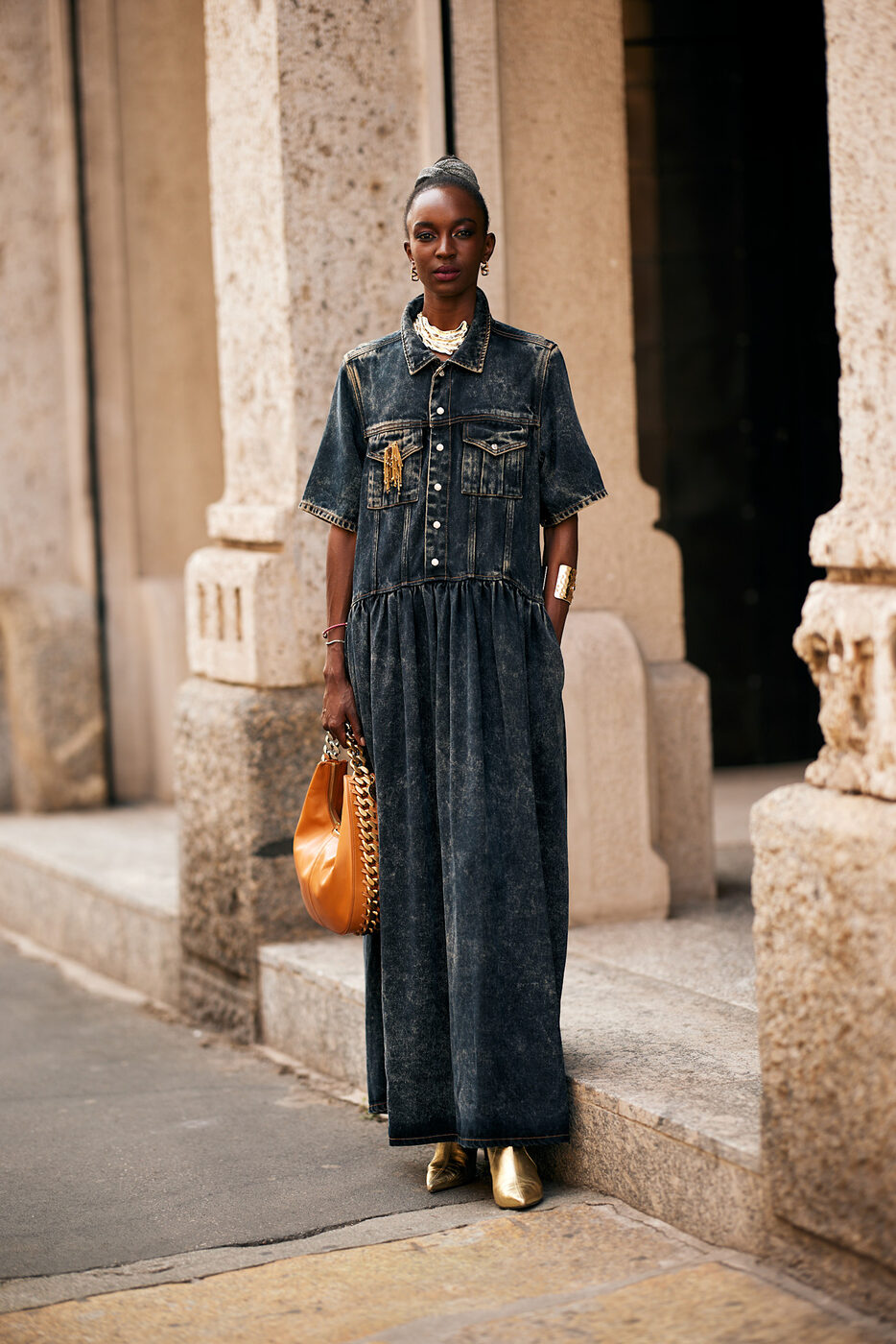 자연스럽게 떨어지는 슬라우치 라인이 매력적인 호보 백은 옷차림이 단순할수록 진가를 발휘하는데, 데님이나 트레이닝 룩과 같이 힘을 뺀 의상에 툭 걸쳐주면 여유로우면서도 시크한 멋을 느낄 수 있죠. 다만 호보 백은 수납에 따라 가방의 형태가 달라질 수 있으니, 가방이 크다고 물건을 잔뜩 넣어 빵빵하게 만드는 것은 추천하지 않습니다.