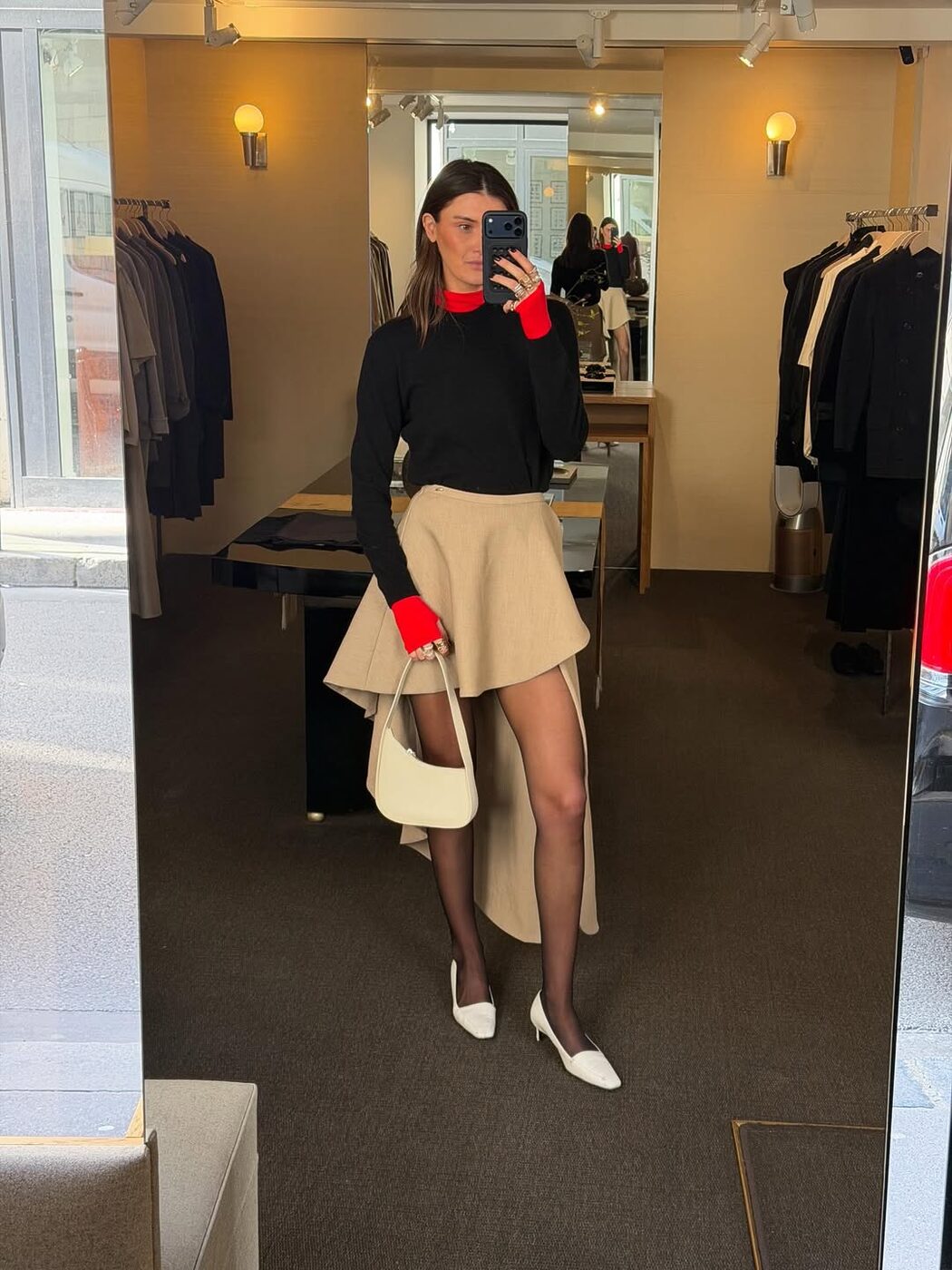 미니 사이즈도 볼록한 반달 셰이프 덕분에 스마트폰과 쿠션, 립스틱 정도는 충분히 들어가니 실용성도 뛰어나고요. 큰 사이즈의 가방은 오염 우려가 있어 주로 어두운 계열을 고르게 되는데, 미니 호보 백만큼은 관리 부담이 적고 룩을 더 화사하고 밝게 만들어주는 효과도 있으니 화이트처럼 밝은 컬러를 선택해도 좋습니다.