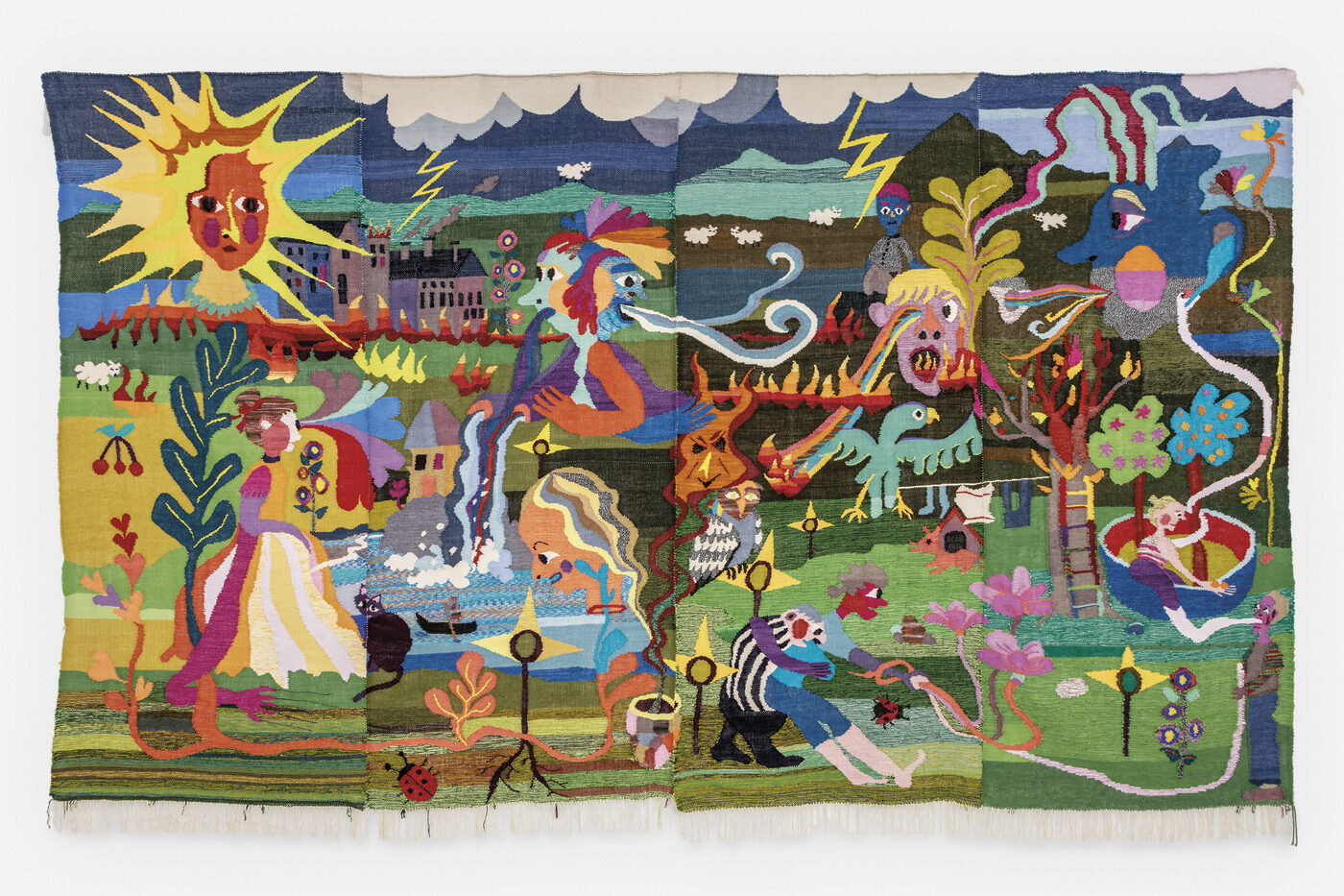 취리히에서 태어나 LA에서 활동하는 작가 크리스티나 포러(Christina Forrer)에게도 음악처럼 느껴지는 직조 특유의 리듬은 매력적이다. 포러의 작품에는 스위스 동화 같은 풍경에 만화 스타일로 표현한 마녀와 광대, 수많은 숲속 동물이 등장한다. “저에게는 만드는 과정 자체가 즐거움을 찾는 순간이에요. 작품 속에 들어가 있는 느낌이 좋아요. 그림을 그릴 때처럼, 어느 순간이든 내가 원하는 대로 바꿀 수 있으니까요.”