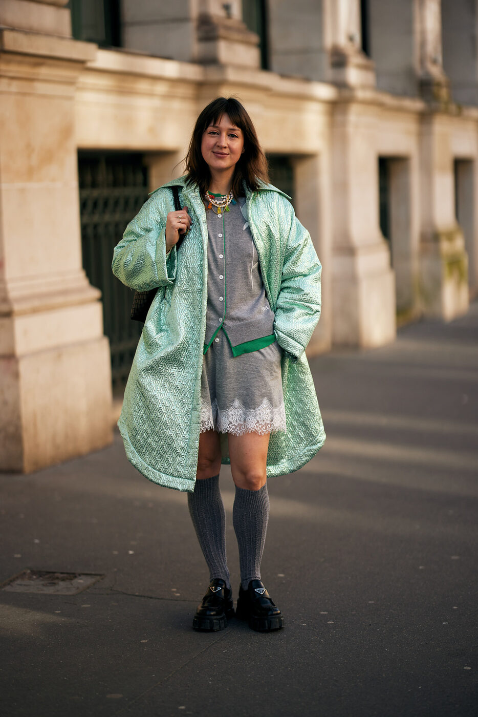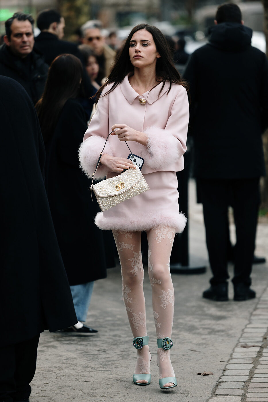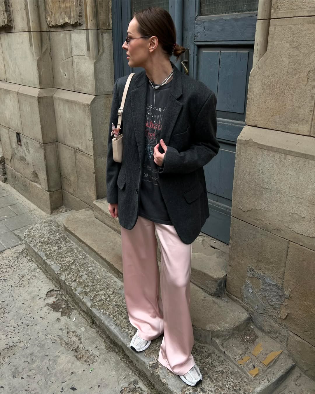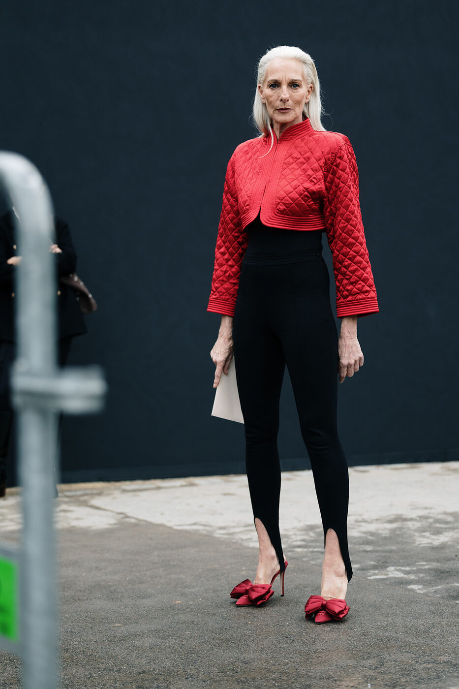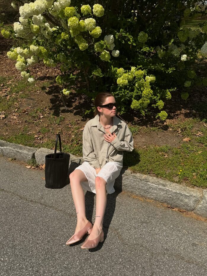 적재적소에 활용한 새틴 액세서리 역시 인상적인 옷차림을 완성하는데 큰 역할을 합니다. 딱히 특별할 것 없는 베이식한 아웃핏이지만 여기에 무심코 신은 새틴 플랫 슈즈 하나로 누군가의 핀터레스트 스타일링 참고 폴더에 스크랩 될 수도 있을지도 모를 일이고요. 매니시한 셔츠 룩에 예상치 못한 새틴 글로브와 파우치를 더해 유쾌함을 드러내는 것 역시 의외의 도파민을 선사하기도 합니다. 손바닥 뒤집듯 쉽게 바뀌는 유행의 흐름 속에서 새틴 트렌드가 여전히 건재한 이유이기도 하죠.