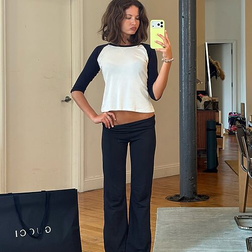 카프리 팬츠 스타일링의 정수, 오드리 헵번의 룩을 참고해보는 것도 좋겠습니다. 그녀는 영화 ‘사브리나’에서 블랙 카프리 팬츠에 플랫 슈즈를 매치해 지금까지 회자되는 아이코닉한 스타일을 완성했습니다. 특히 발레 플랫과 블랙 카프리 팬츠의 조합은 별다른 디테일 없이도 트렌디해 보이는 지금 가장 세련된 아이템들의 만남이기도 하죠.