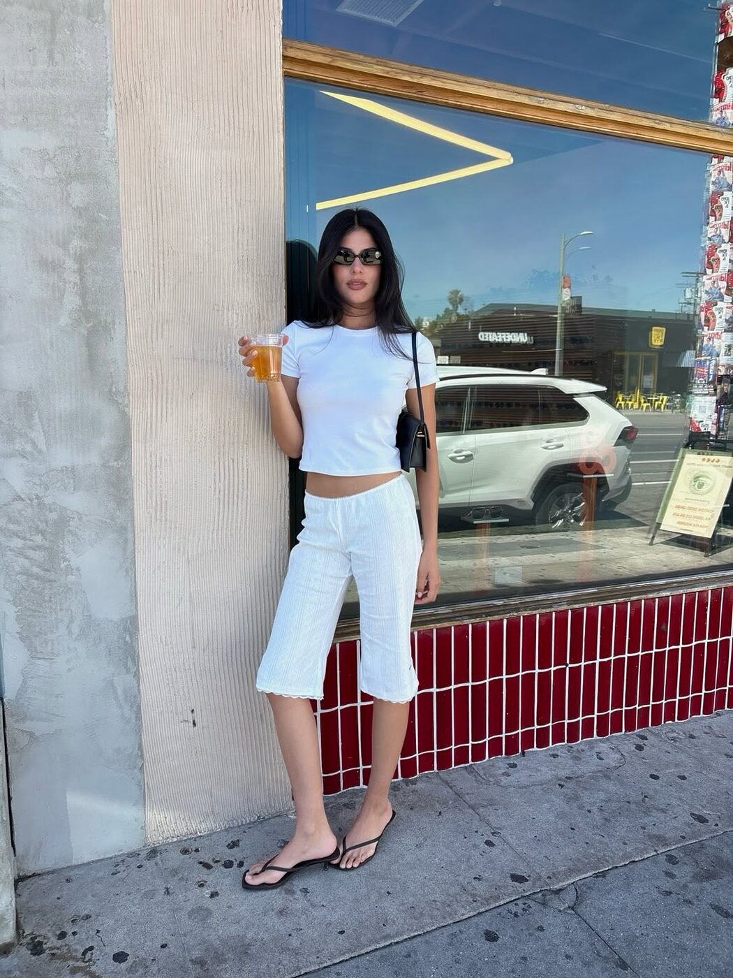 샌들 힐은 카프리 팬츠의 단점으로 꼽히던 비율 고민을 단번에 지워줄 슈즈입니다. 발등과 발목을 시원하게 드러내는 디자인 덕분에 다리가 훨씬 길어 보이죠. 여기에 자연스럽게 키를 보완해주는 굽까지 더해지면 그야말로 금상첨화. 비율은 한층 더 안정적으로 정리되고 전체적인 룩도 더욱 세련되고 경쾌하게 느껴집니다.