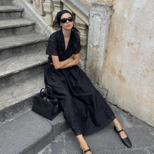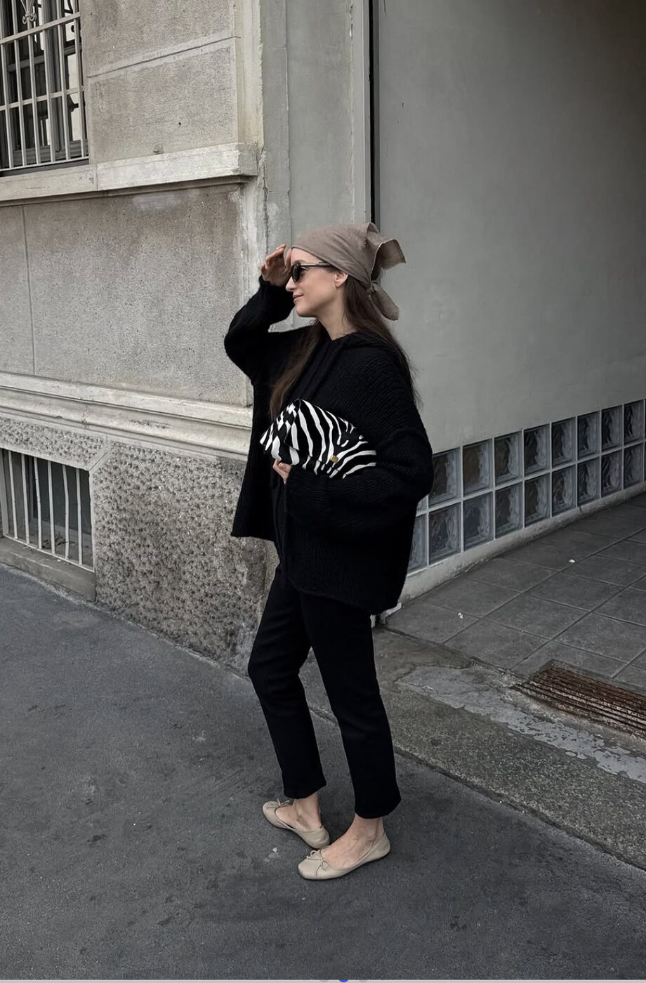 이 머리 수건들은 입는 옷과 어느정도 매치가 되어야 더 세련되보여요. 화이트 레이스는 같은 레이스 소재의 드레스와 핑크색 두건은 핑크색 톱과 함께 말이죠. 올블랙의 시크한 룩에는 신발과 컬러를 통일하기도 했습니다. 브라운 발레 슈즈에 비슷한 톤의 두건을 써 메이드 스타일링을 완성했어요.