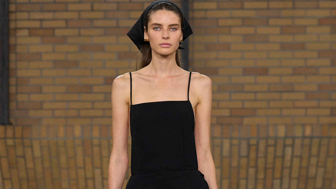 켈빈 클라인은 마치 90년대로 돌아간 듯 특유의 도시적이고 미니멀한 디자인으로 메이드 룩을 선보였습니다. 가느다란 스파게티 스트랩의 직선이 돋보이는 구조적인 실루엣의 미니 혹은 미디 드레스들은 앞치마에서 영감을 받은 듯하고 머리엔 메이드들의 필수 액세서리죠, 정갈한 느낌을 주는 헤어 스카프를 더했어요. 더욱 눈에 띄는 건 모던함 그 자체인 슈즈의 매칭이에요. 미니멀의 정수를 담은 듯한 디테일이 없는 슬립온 슈즈나 부츠를 신어 한층 더 세련된 무드의 하녀 패션을 완성했답니다.