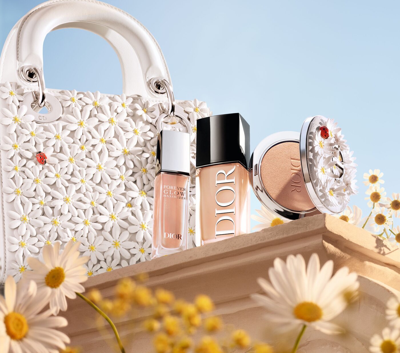 프로방스의 햇살에서 출발한 두 제품. 디올 포에버 글로우 루미나이저는 카나주 패턴 위 데이지와 무당벌레 디테일을 더한 케이스로 재해석됐으며, 진줏빛 마이크로 피그먼트를 담은 포뮬러가 가볍게 밀착되어 피부 위에 맑은 빛을 남긴다. 디올 포에버 글로우 맥시마이저는 미세 펄 피그먼트를 함유한 핑크 시머의 골드빛 리퀴드 텍스처로 즉각적인 광채를 입힌다.