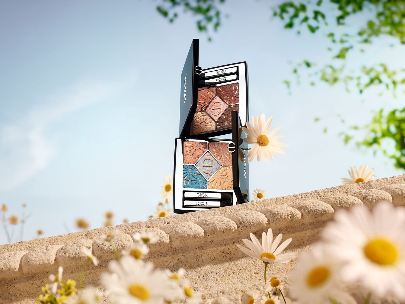 데이지 패턴을 새긴 블루와 코랄, 두 가지 팔레트로 재해석됐다. 파우더 표면의 브론즈 펄이 맑은 빛을 드리우고, 사틴과 매트, 펄 텍스처가 자연스럽게 어우러진다.