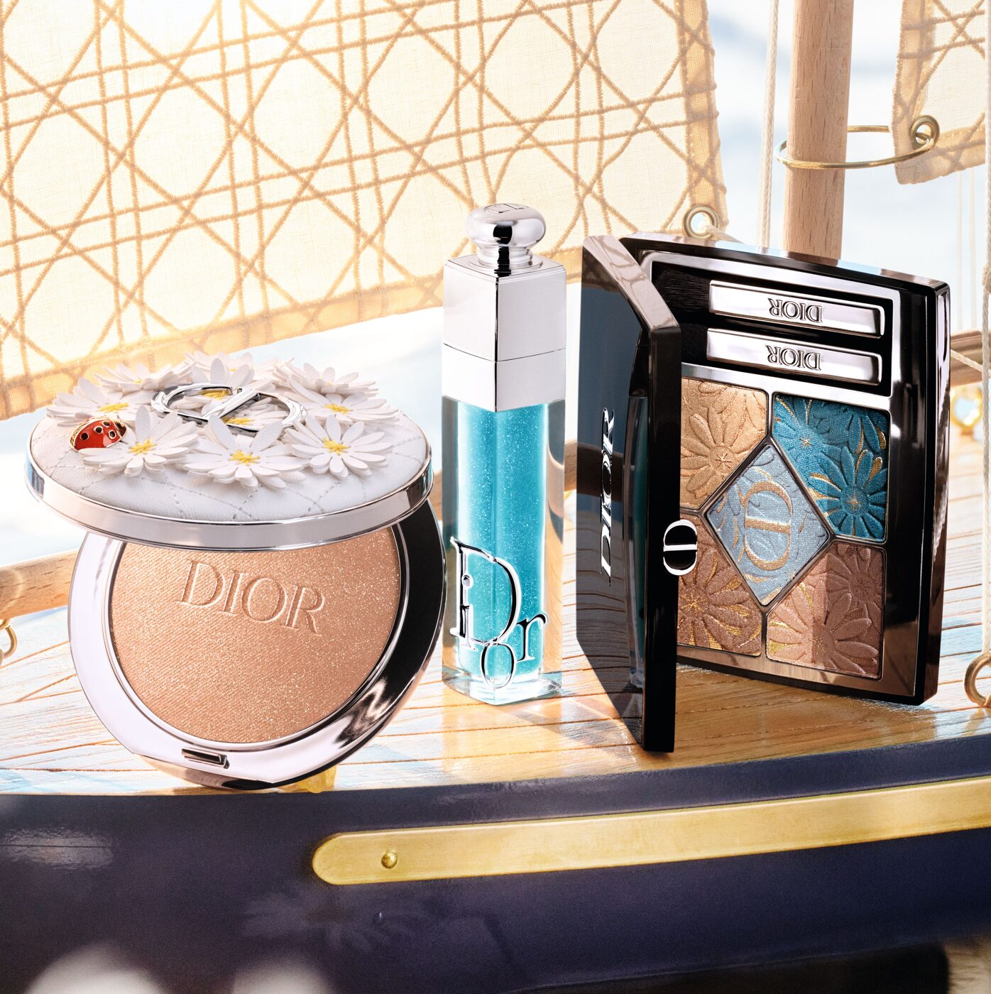 메이크업 크리에이티브 & 이미지 디렉터 피터 필립스(Peter Philips)는 블루와 코랄이라는 대비되는 컬러를 중심에 둔다. 하나는 청량하게 열려 있는 낮의 공기, 다른 하나는 서서히 식어가는 저녁의 빛에 가깝다. 블루 위에 골드와 코랄을 얹은 프레쉬 블루 썸머 룩(Fresh Blue Summer Look)은 가볍고 선명하게, 코랄과 핑크, 브릭 톤이 겹치는 선키스드 코랄 썸머 룩(Sun-Kissed Coral Summer Look)은 보다 따뜻한 무드로 농도 있게 완성된다. 이번 시즌, 데이지와 무당벌레 모티프를 얹은 리미티드 디테일은 컬렉션의 완성도를 한층 끌어올리며 소장 가치를 더한다.