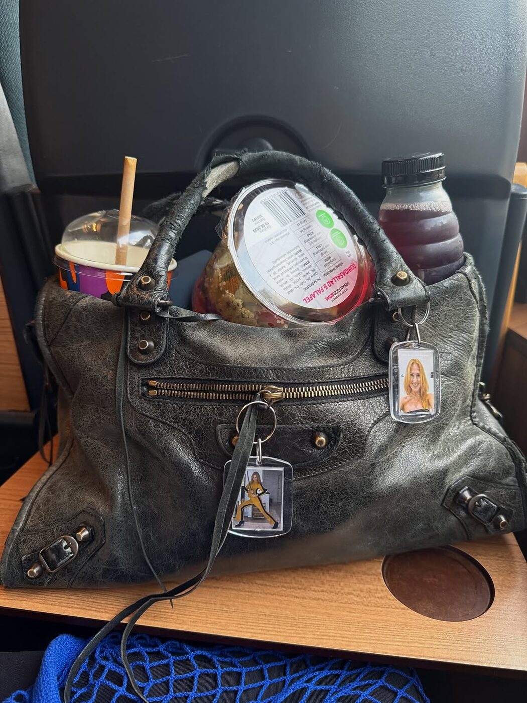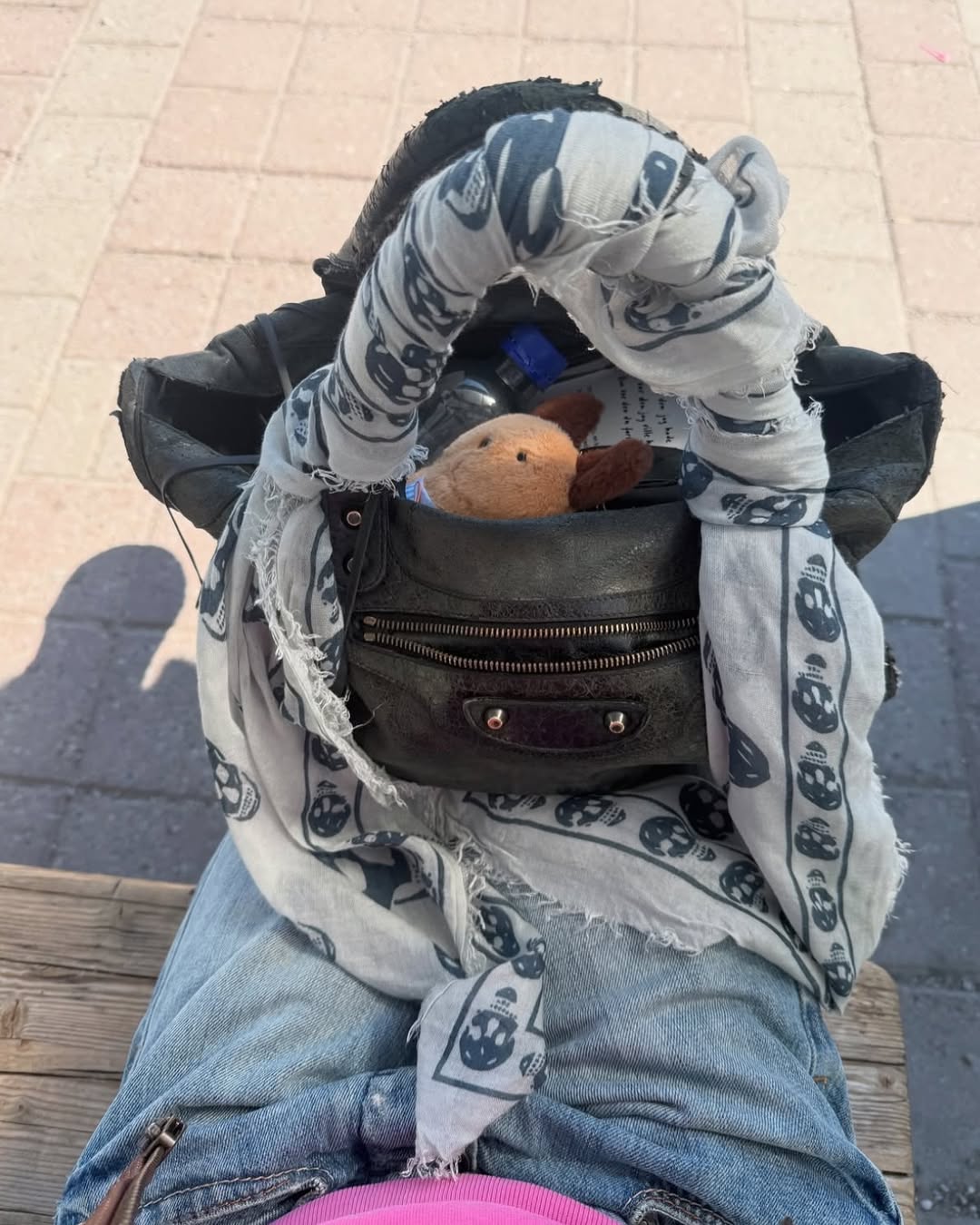 키치하고 소녀스러운 옷차림과 반대되는 거친 매력의 르 시티 백을 든 올리비아 할리. 그녀가 가방을 활용하는 방식 또한 독특한데요. 아기자기한 키링과 해골 스카프를 두른 백꾸는 기본이고요. 커피와 간식, 헤드셋 그리고 아우터를 반만 걸쳐 넣는 등 보부상 스타일로 백을 즐기죠. 다양한 연출 속에서도 드러나는 자연스러움이 백의 쿨한 개성을 더욱 돋보이게 합니다.