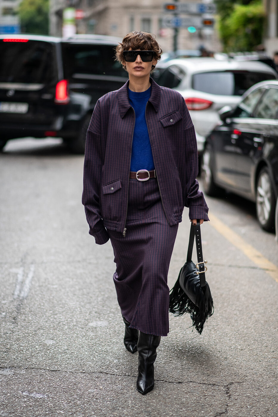 룩 전체에 적용하기엔 다소 부담스럽게 느껴진다면 백이나 슈즈, 스카프처럼 비교적 작은 면적의 아이템으로 가볍게 더해보는 것도 좋은 방법이죠. 채도가 높고 깊이감이 느껴지는 로열 퍼플은 그 자체만으로도 충분한 존재감을 발휘하니까요. 포멀한 올 블랙 룩에 한 끗 포인트로 이 컬러를 더해 보세요. 컬러 조합을 복잡하게 고민하지 않아도 되고 과하지 않게 확실한 인상을 남길 수 있죠.