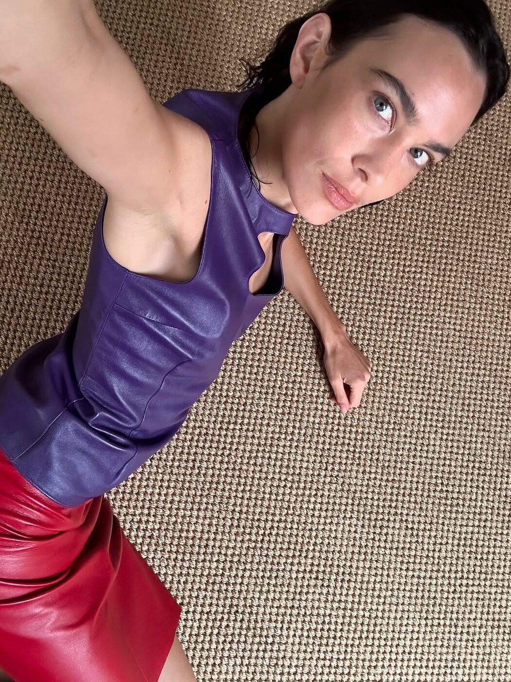 로열 퍼플이 지닌 럭셔리한 무드를 한층 또렷하게 끌어올리고 싶다면 레드나 블루와의 조합을 시도해보세요. 각각 존재감이 강한 컬러라 부담스럽게 느껴질 수 있지만, 보라색을 이루는 두 가지 컬러인 만큼 의외로 자연스럽고 완성도 높은 밸런스를 만들어냅니다. 상하의 모두를 레더로 맞춘 알렉사 청처럼 힘 있는 텍스처를 더하면 더욱 스타일리시한 아웃핏을 완성할 수 있겠군요.