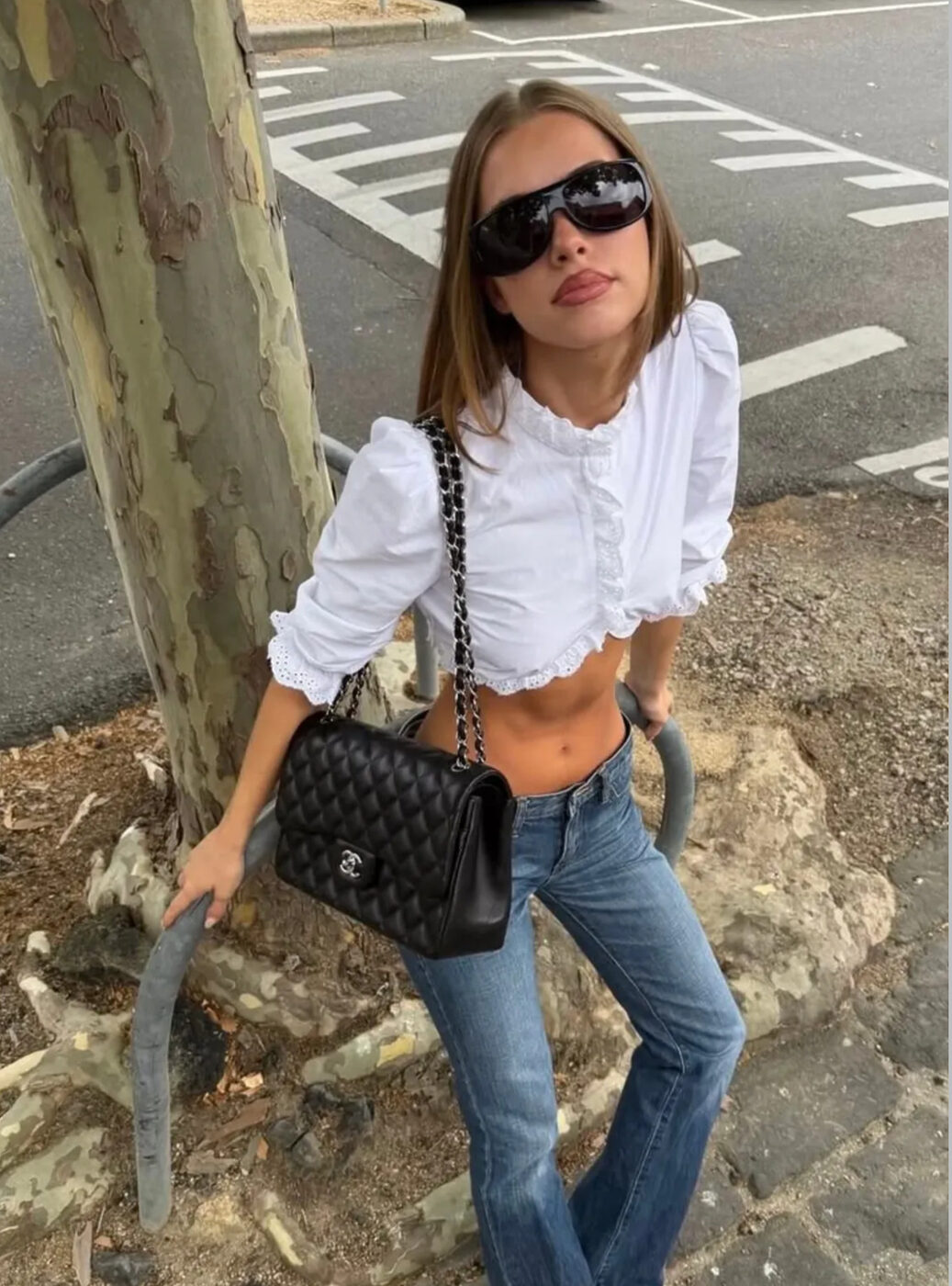 Y2K 시절의 패리스 힐튼의 룩을 주목하세요. 플레어 라인의 스키니 진은 치골이 보일정도로 한껏 내려온 로우 라이즈 스타일로 허리를 드러냈습니다. 상의는 퍼프 소매가 달린 코티지 풍의 오프 숄더 톱으로 걸리시함을 강조했죠. 미니 백을 어깨에 맨 2000년대 파티 걸의 자태, 올 여름 거리에서 마주쳐도 손색없을 스타일링입니다.
