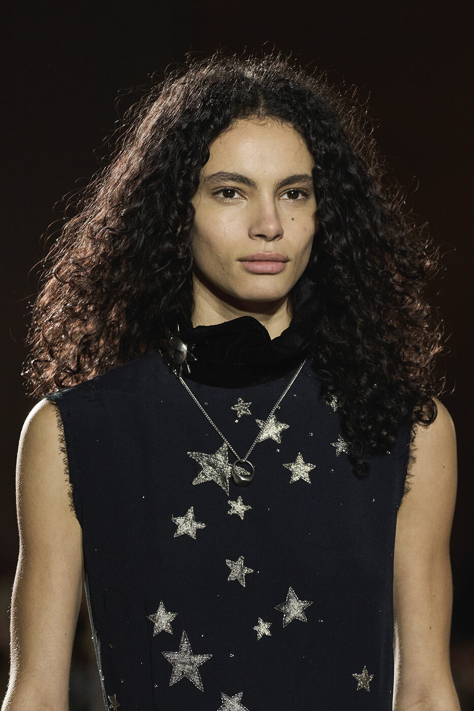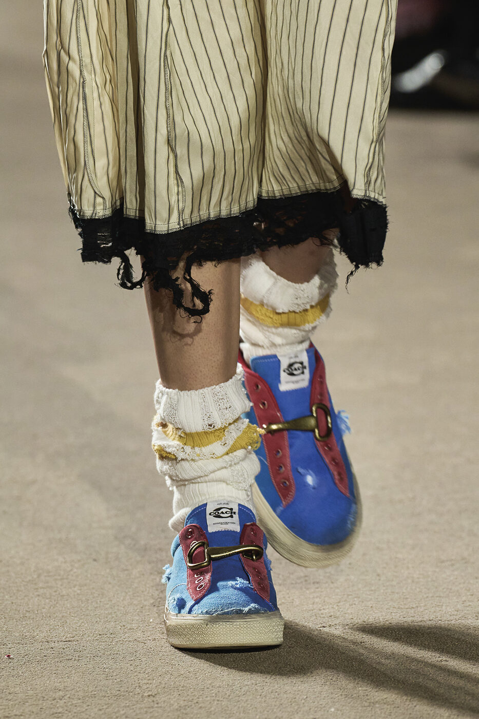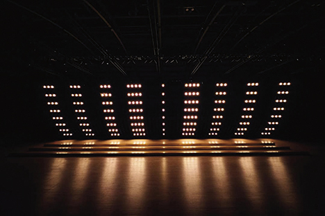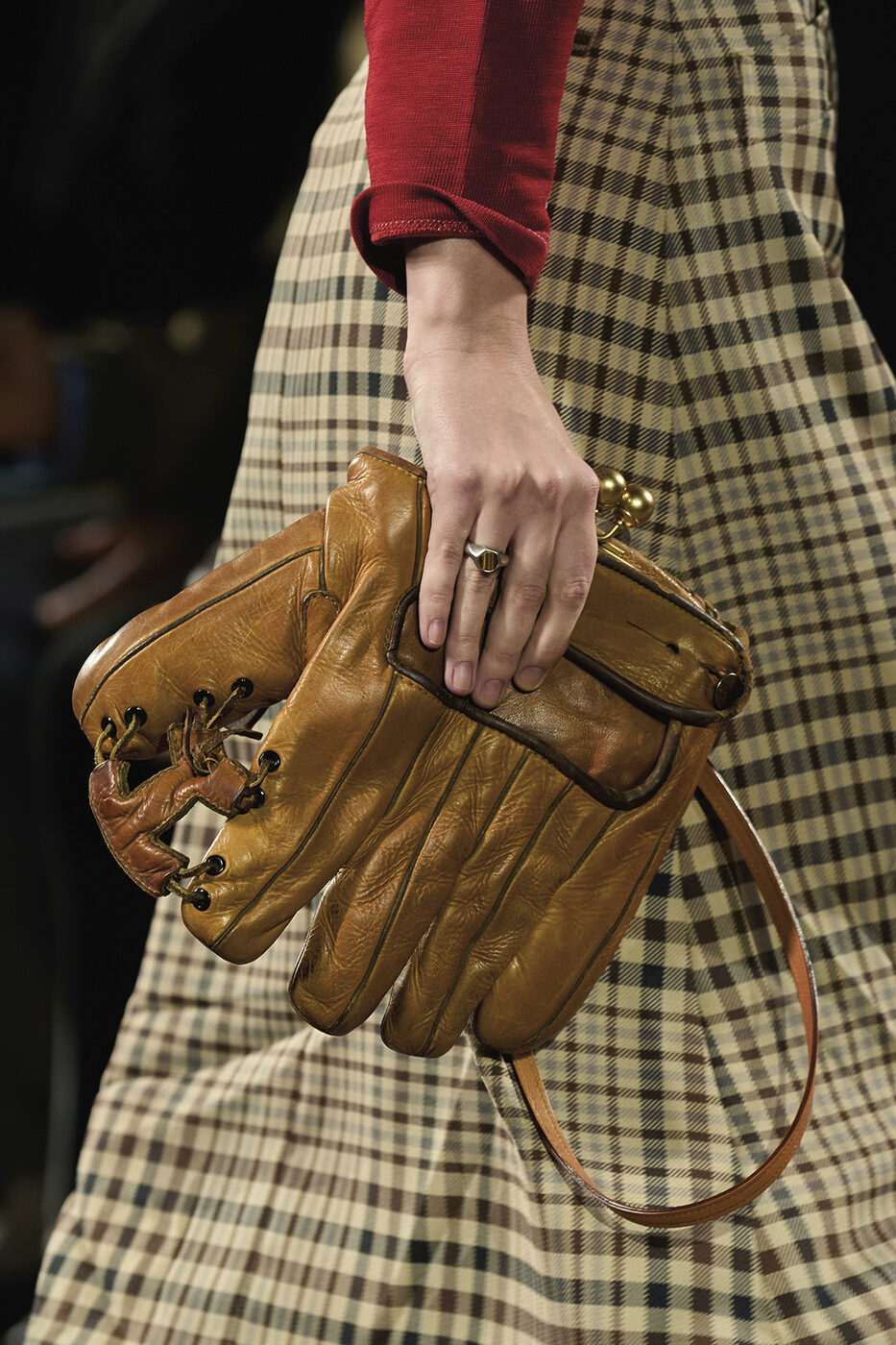 1,500평 규모의 공간에 설치된 거대한 LED 월과 여백의 미를 살린 황동색 스툴의 배치. 파크 애비뉴 아모리의 번쩍이는 문자들이 연출한 극적인 배경 속에서, 이번 시즌 케이트 크리에이티브 디렉터 캐서린 홀스타인의 영감이 무척 궁금해졌다. ‘단어의 짓눌리는 무게(The crushing weight of words)’와 같은 문구들이 쏟아지는 런웨이는 곧장 레터박스 앱을 켜 오손 웰스 감독의 다큐멘터리 <거짓의 F(F for Fake)>를 워치 리스트에 추가하게 만들었다.