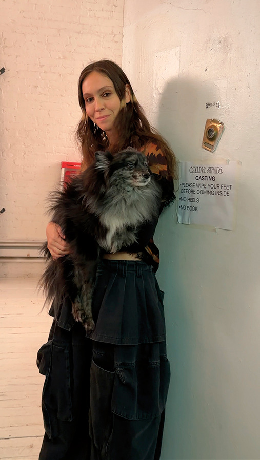 콜리나 스트라다 스튜디오의 문이 열리자마자 에디터를 가장 먼저 반긴 건 크리에이티브 디렉터 힐러리 테이무어의 애완견 파우이였다. 뜨거운 조명과 사람들이 내뿜는 열기는 아랑곳하지 않고 스튜디오 이곳저곳을 누비며 자신의 귀여움을 뽐내는 파우이의 재능이 온 세상으로 퍼지길 바라며 인스타그램 계정(@superpowie)을 공유한다.