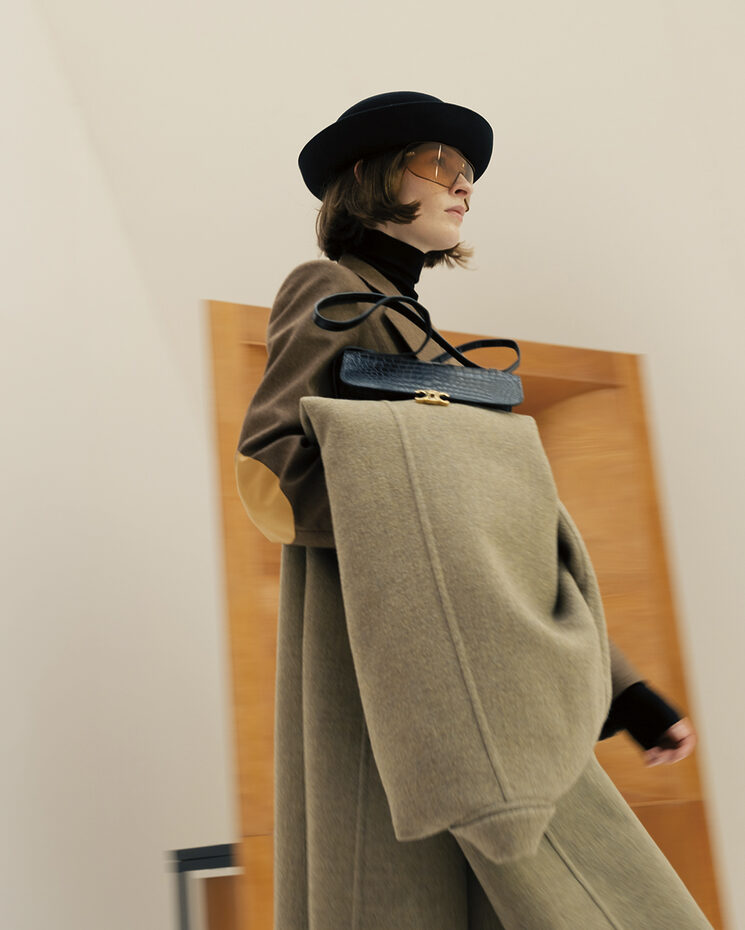 모든 게 완벽하게 맞물릴 때보다, 살짝 어긋날 때 더 흥미로워진다. 마치 잼 세션처럼. 프랑스 학술원에서 펼쳐진 마이클 라이더의 셀린느 2026 F/W 컬렉션. 세 번째 시즌에서 그는 그 미묘한 어긋남의 감각을 자기만의 방식으로 풀어냈다. 테일러드 재킷, 슬림 팬츠, 단정한 코트로 출발한 쇼는 어딘가 익숙했다. 하지만 룩이 이어질수록 전체적인 비율은 조금씩 어긋나고, 디테일에는 가벼운 장난기가 스며 있었다. 재킷의 금속 단추를 유난히 작게 줄이거나, 슬림한 팬츠의 퍼짐을 과장하는 식이다. 점잖고 차분한 옷인데도 얌전하게 마무리되지 않은 이유다. 위트는 스타일링에서 더 분명 해진다. 더비햇과 버킷햇은 룩의 인상을 선명하게 했고, 클래식한 트렌치코트 위에 볼드하고 토속적인 네크리스를 무심하게 얹는다. 또 스포티한 고글, 크게 감아 올린 머플러까지. 계산은 정교하고 치밀하지만 조금도 과하지 않고, 각각의 요소는 흩어지지 않고 하나를 향해 나아간다. 이 균형이 바로 마이클 라이더의 강점이다.