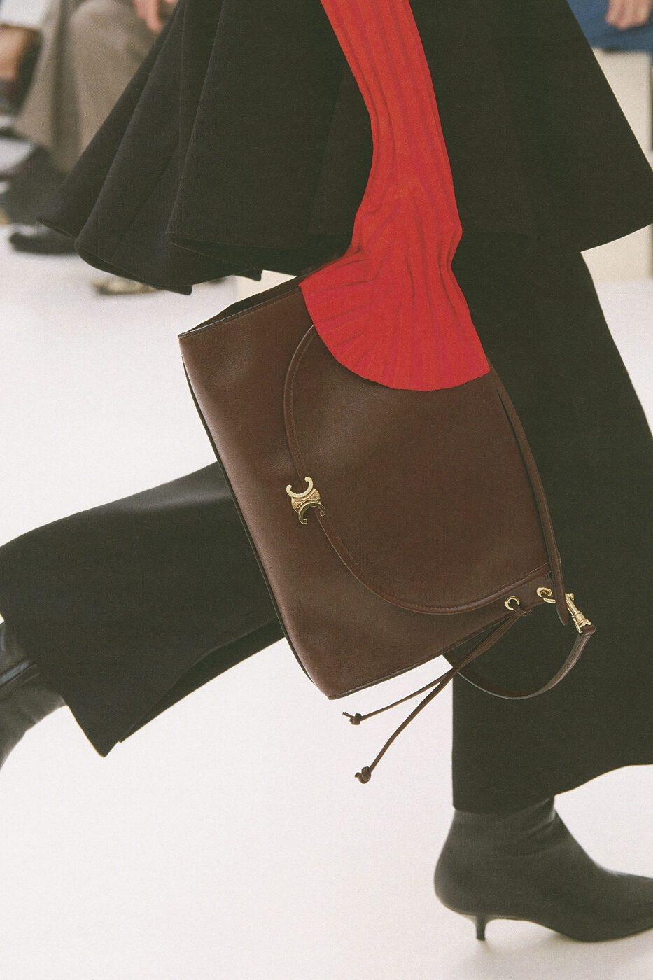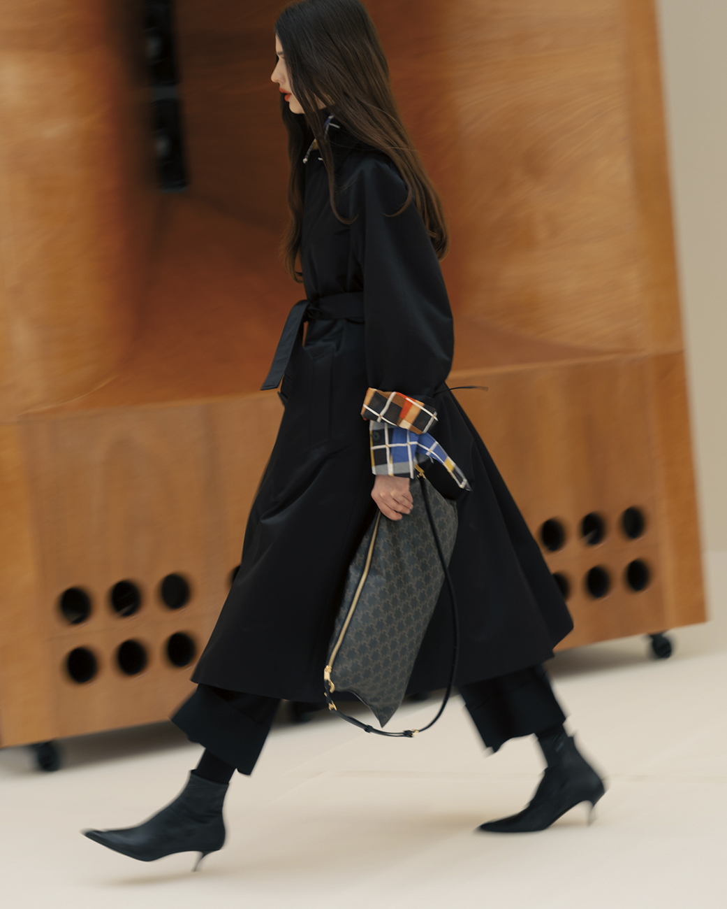 한편 이번 쇼의 밀도를 완성한 또 하나의 축은 사운드였다. 파리 기반 아티스트 마테오 가르시아(Matéo Garcia)가 제작한 하이엔드 사운드 시스템이 런웨이 곳곳에 배치됐다. 조각적인 목재와 스틸로 구성된 스피커는 단순한 장비를 넘어 공간에 특별한 아우라를 드리운 채 중심을 잡아주었다. 1970년대 잼 세션의 은밀하고 몽환적인 에너지를 떠올리게 하는 사운드는 프린스를 비롯해 여러 뮤지션의 음악을 통해 더욱 또렷해졌다. 시각적인 클래식과 청각적인 리듬이 교차하는 공감각적 연출은, 이번 시즌이 다루는 감정의 결을 한층 입체적으로 확장시켰다. 결국 이번 컬렉션은 클래식을 뒤집지 않는다. 익숙한 틀을 유지한 채, 비례와 장식, 스타일링의 호흡만 조금씩 어긋나게 만든다. 마이클 라이더는 셀린느를 억지로 흔들지 않는다. 대신 단정한 표면 아래, 미묘한 균열을 남긴다.