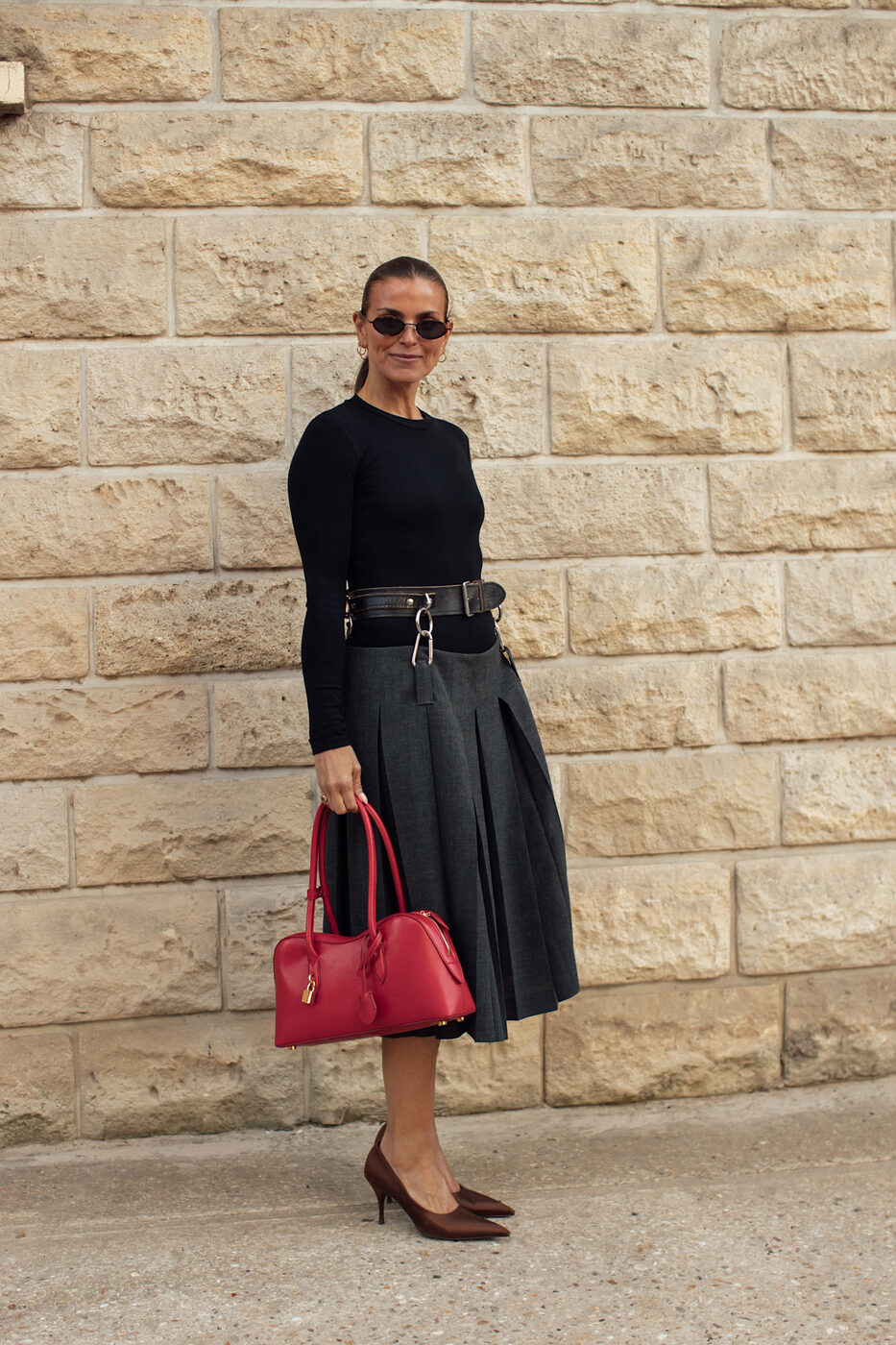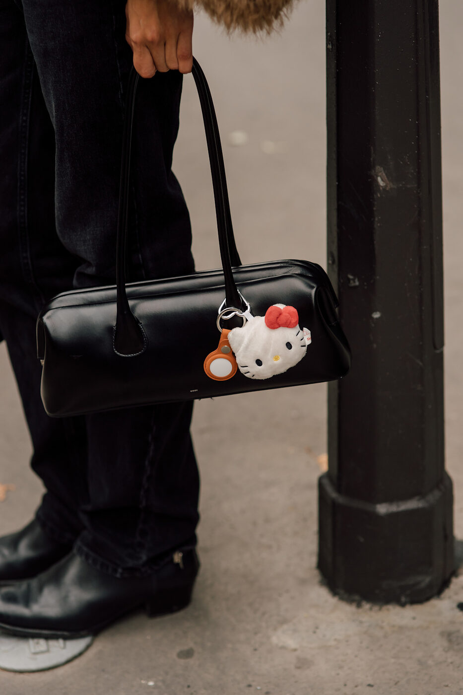 요즘 가장 많이 착용하는 볼링 백은 긴 직사각형 형태의 롱 핸들 백! 샤넬과 프라다, 미우미우, 알라이아 등 수많은 패션 하우스에서 선보이는 디자인으로 매끈한 가죽 외 로고마저 거의 드러나지 않는 미니멀한 디자인이 특징입니다. 조용한 럭셔리(Quiet Luxury) 흐름과 맞아떨어지며 인기를 끌고 있는데, 갖춰 입은 포멀 룩과 느슨한 실루엣의 캐주얼 룩 모두 잘 어울려 데일리 백으로 딱 하나만 골라야 한다면 이 백을 추천해요. 룩에 위트를 더하고 싶은 날엔 기은세처럼 귀여운 백 참을 더해 나만의 백을 연출해 보세요.
