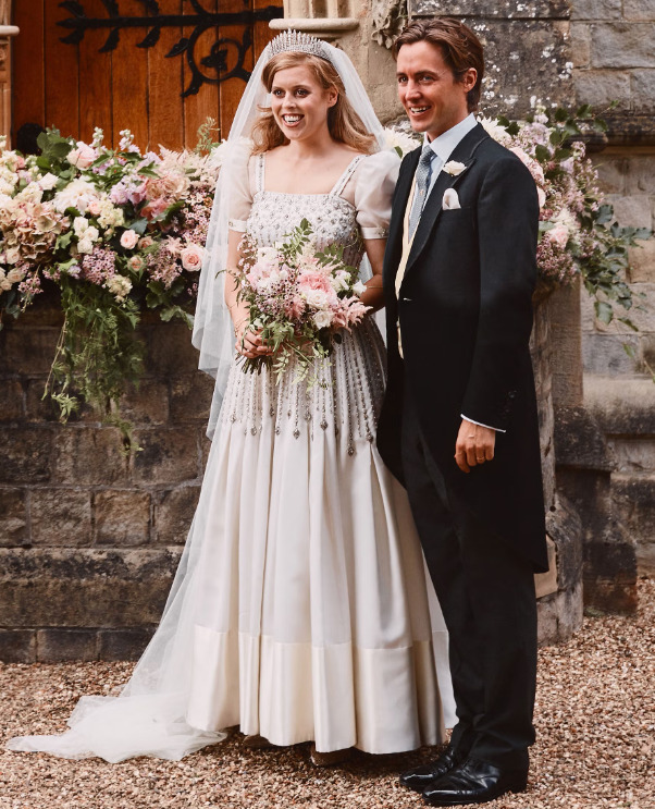 당대 최고의 패션 디자이너에게 가장 고가의 드레스를 주문했을 것만 같은 영국 왕실의 공주님. 실상은 전형적인 공주님 라인 대신 할머니, 엘리자베스 2세가 입었던 이브닝 드레스를 웨딩 가운으로 리폼해 입으며 검소하고 의미 깊은 결혼식을 올렸답니다. 물론 여왕의 드레스 자체가 왠만한 웨딩 드레스보다 더욱 가치가 있겠지만요. 여기에 왕실의 권위와 파워가 느껴지는, 이 또한 엘리자베스 여왕의 것이었던 미니멀한 디자인의 다이아몬드 티아라로 로열 웨딩을 완성했습니다.
